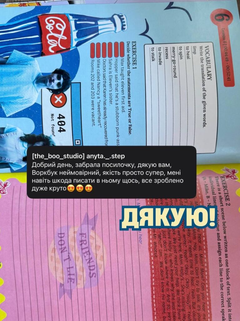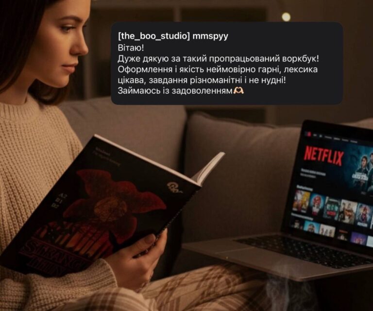 Я сама створюю методику, вправи, наповнення та дизайн усіх матеріалів. Я знаю, з якими труднощами стикаються студенти, тому мої воркбуки допомагають не просто запам’ятовувати слова й правила, а реально почати користуватися англійською в повсякденному житті. У матеріалах — лише те, що справді знадобиться.
