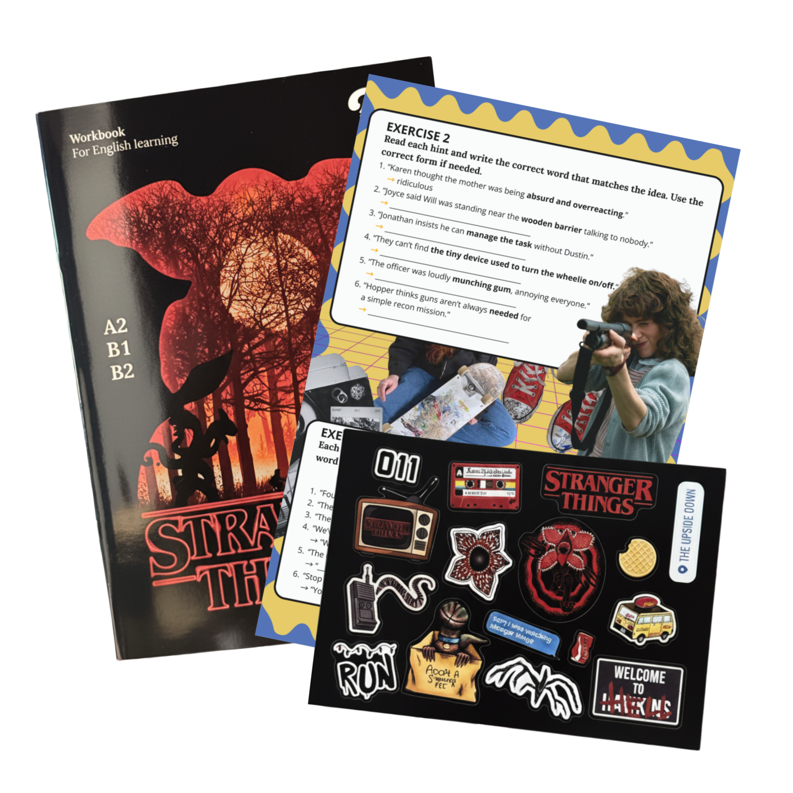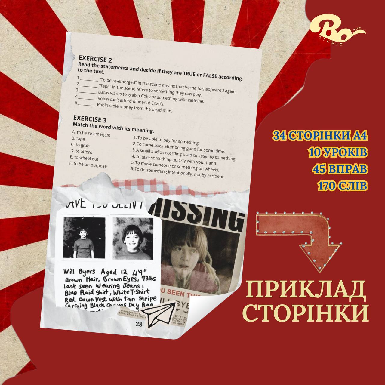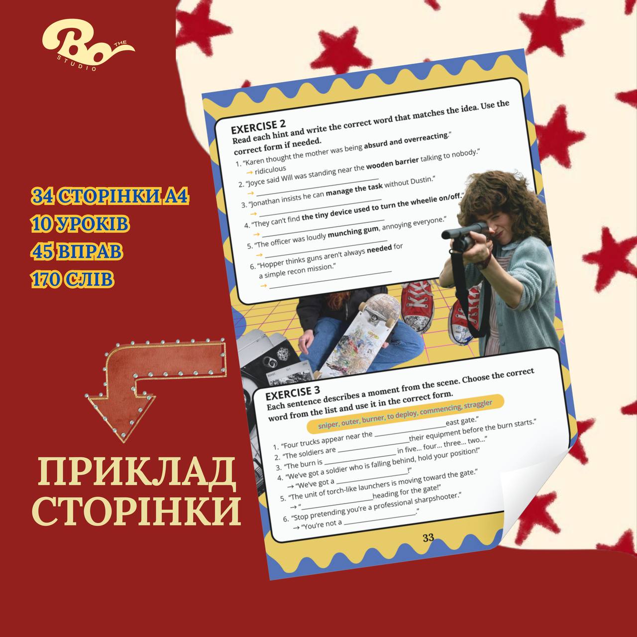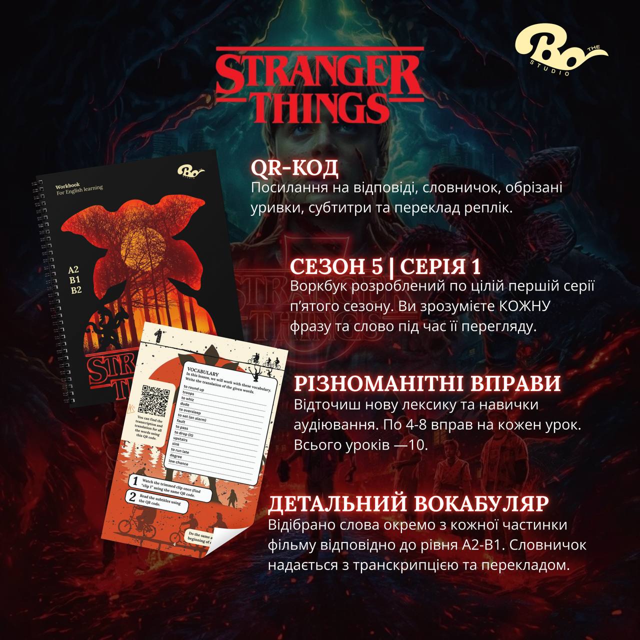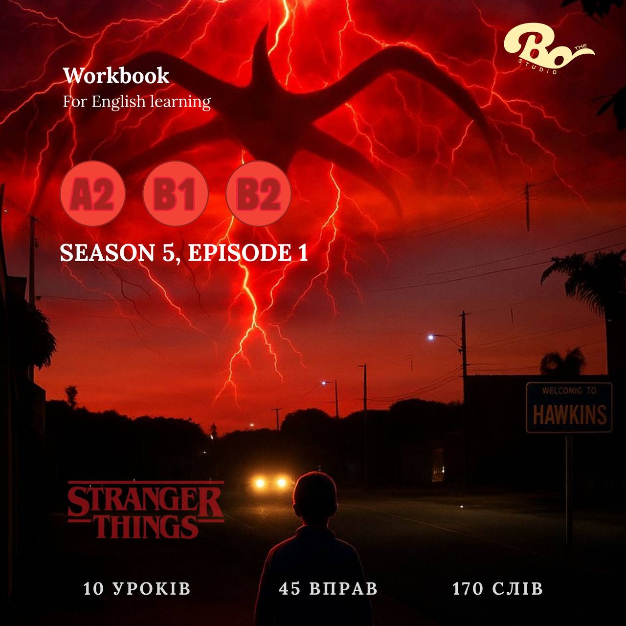 Воркбук на основі 1 серії 5 сезону серіалу Stranger Things. Підручник поділений на 10 уроків, щоб ви працювали з кожною секундою серії, а не просто її фрагментами, як це часто можна зустріти у інших авторів. Тому по закінченню підручника ти зможеш переглянути та зрозуміти кожну репліку героїв та цілісіньку серію в оригіналі, так-так!